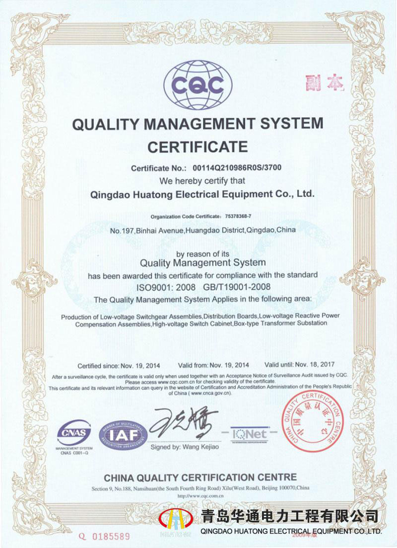 • ISO9001:2008質(zhì)量體系認(rèn)證證書