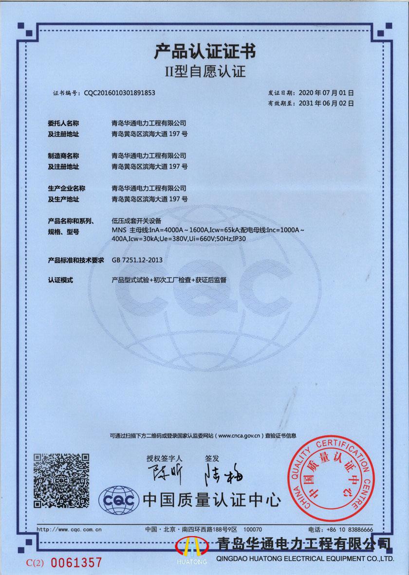 • MNS4000產品認證證書Ⅱ型自愿認證