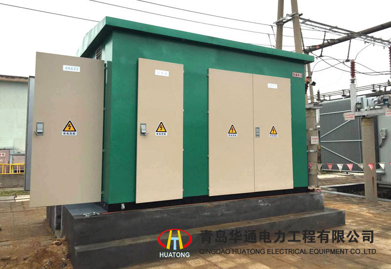 2)有良好的隔熱通風措施。箱體四周均為上下可通氣的雙層結構,箱頂夾層中還設有隔熱材料,有效地降低了因日照引起的室內溫度升高。變壓器室底部、頂部均裝有動換氣扇,側面或門的上半部設百頁窗,可保證變壓器在高溫季節內能滿載安全運行。